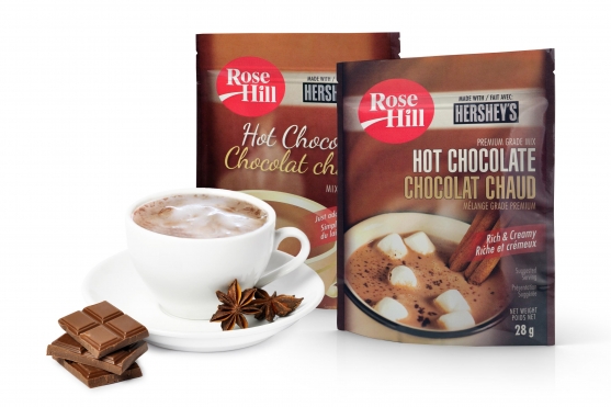 Les Aliments Rose Hill, fiers partenaires de HERSHEY’S sont heureux de vous offrir leurs nouveaux mélanges de chocolat chaud riches et savoureux, soigneusement préparés avec du cacao de grade supérieur HERSHEY’S.